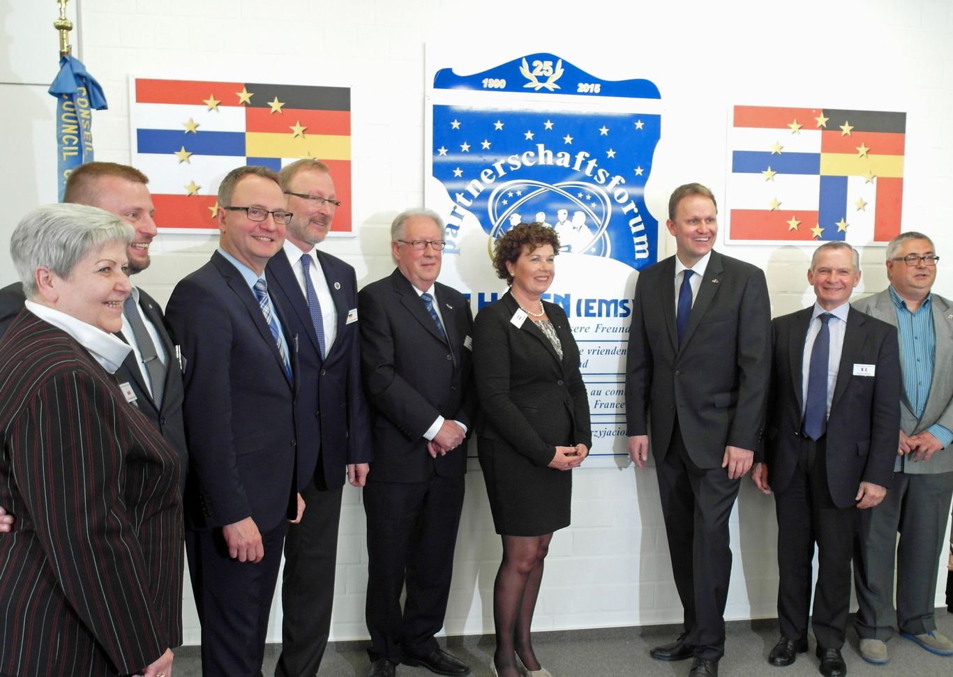 Auch Harens Bürgermeister Markus Honnigfort dankte dem Partnerschaftsforum: „Sie sind die guten Geister im Hintergrund, die planen und organisieren, damit aus Fremden Freunde werden können.“ Viele Begegnungen hätten seither zwischen den Partnerstädten stattgefunden, die jeweils auch untereinander verbunden seien und damit ein „europäisches Kleeblatt“ bildeten. Grußworte übermittelte ferner die niederländische Bürgermeisterin Leontien Kompier sowie ihre Amtskollegen aus Miedzyrzecz und Andrésy, Remigiusz Lorenz und Hugues Ribault.